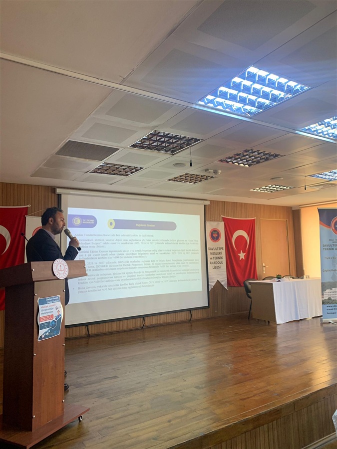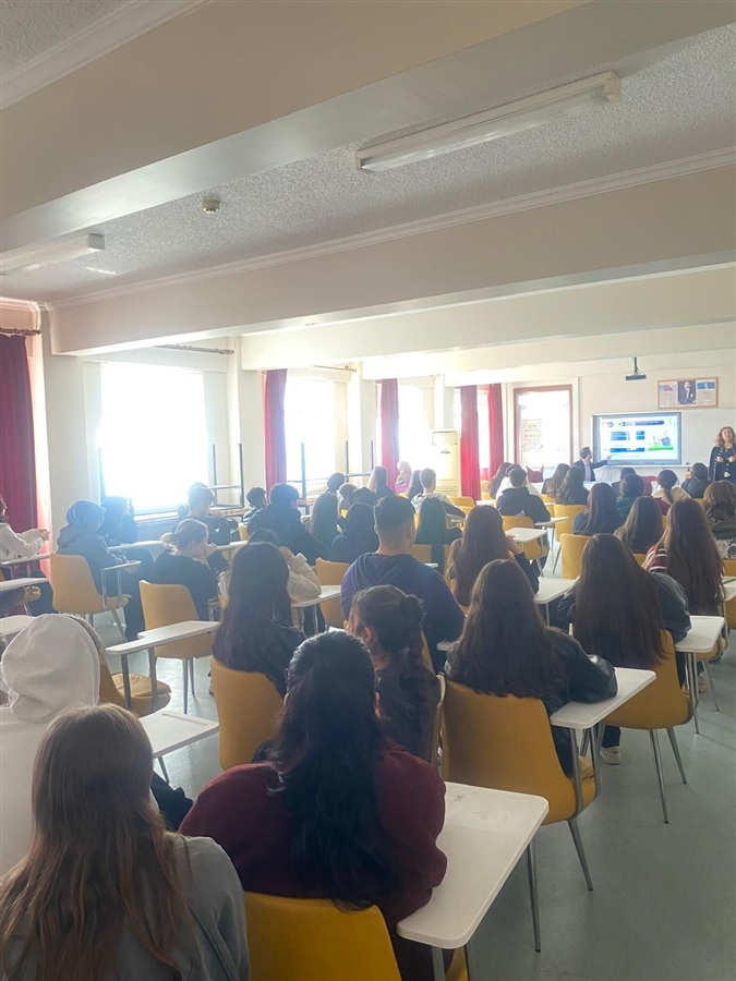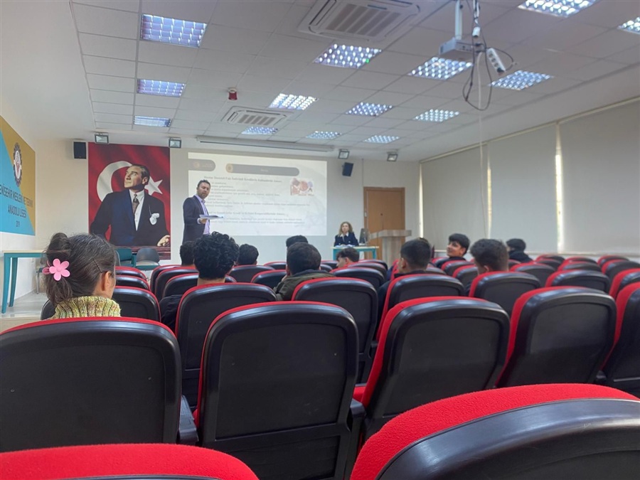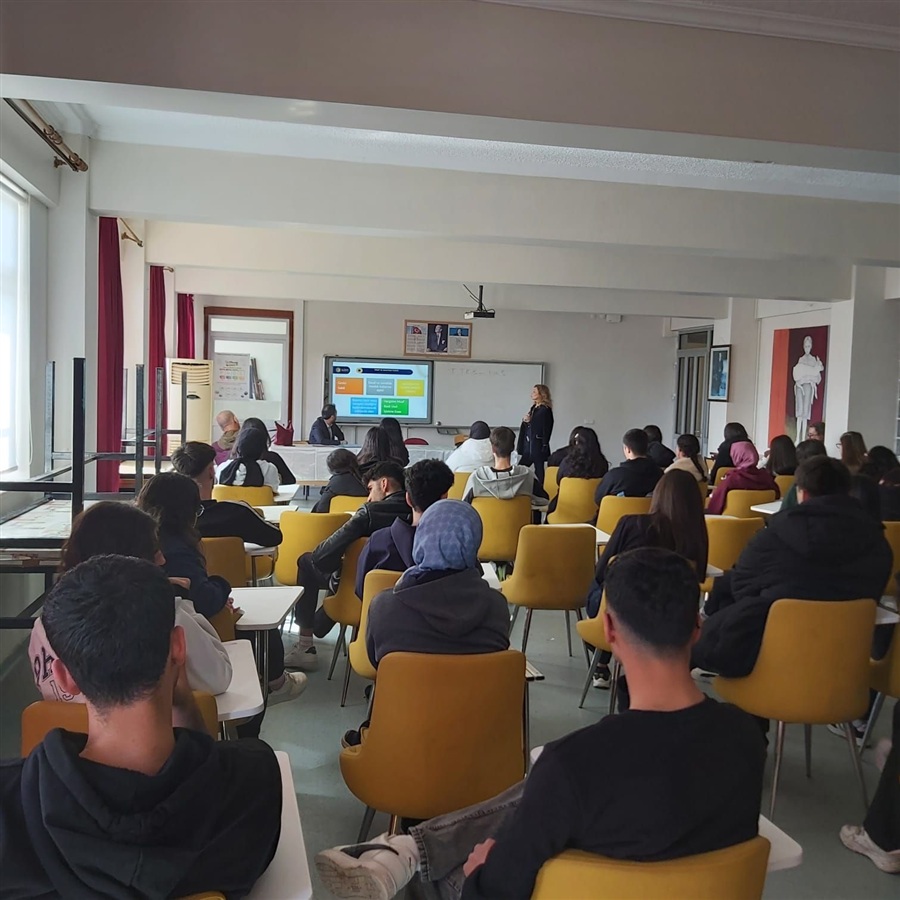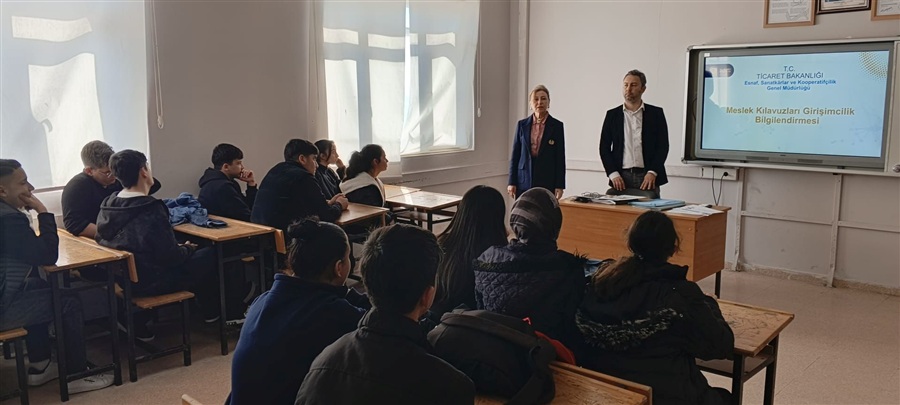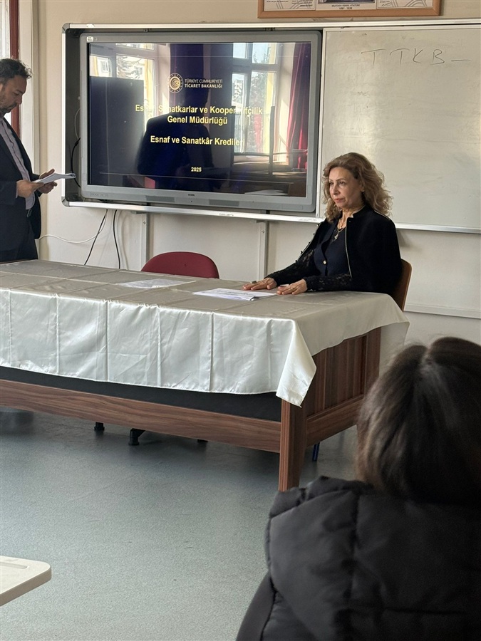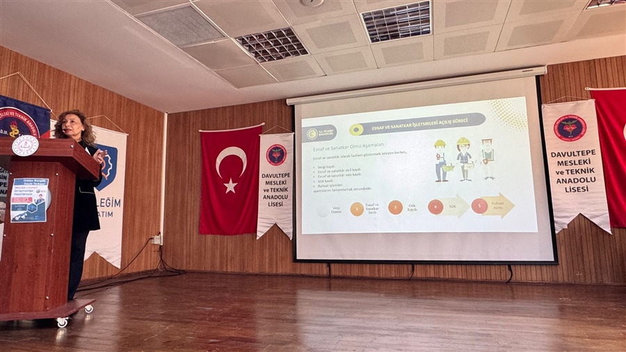 02 Mart 2026 Ticaret Bakanlığı Esnaf Sanatkarlar ve Kooperatifçilik Genel Müdürlüğü ile Millî Eğitim Bakanlığı Mesleki ve Teknik Eğitim Genel Müdürlüğü koordinasyonunda usta adayı ile mesleki ve teknik ortaöğretim kurumlarının 12 nci sınıf öğrencisi olan teknisyen/usta adaylarına yönelik olarak, ticaret hayatına daha donanımlı ve farkındalıkları yüksek şekilde hazırlanmalarını sağlamak amacıyla kamusal destekler, kredi ve teşvik mekanizmaları, vergi ve sosyal güvenlik uygulamaları, iş yeri açılış süreçleri ve mesleğe ilişkin diğer bilgileri içeren DAHİ Mersin Projesi kapsamında girişimcilik eğitimleri ve Kooperatifçilik konulu sunumlar Mersin Ticaret İl Müdürlüğü mühendisleri Nurhayat Küçük ve Erhan Arslan tarafından 10-24 Şubat 2026 tarihleri arasında Akdeniz, Mezitli ,Toroslar ve Yenişehir ilçelerindeki on farklı Mesleki ve Teknik Anadolu Lisesinde gerçekleştirildi.